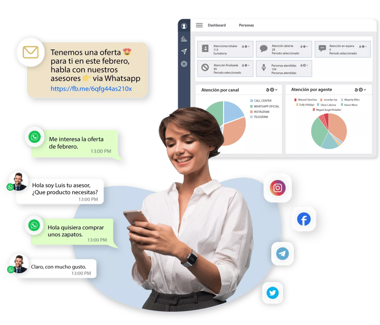 Unifica voz, chat, redes sociales, email y WhatsApp en una única plataforma para mejorar la atención y optimizar la experiencia del cliente.